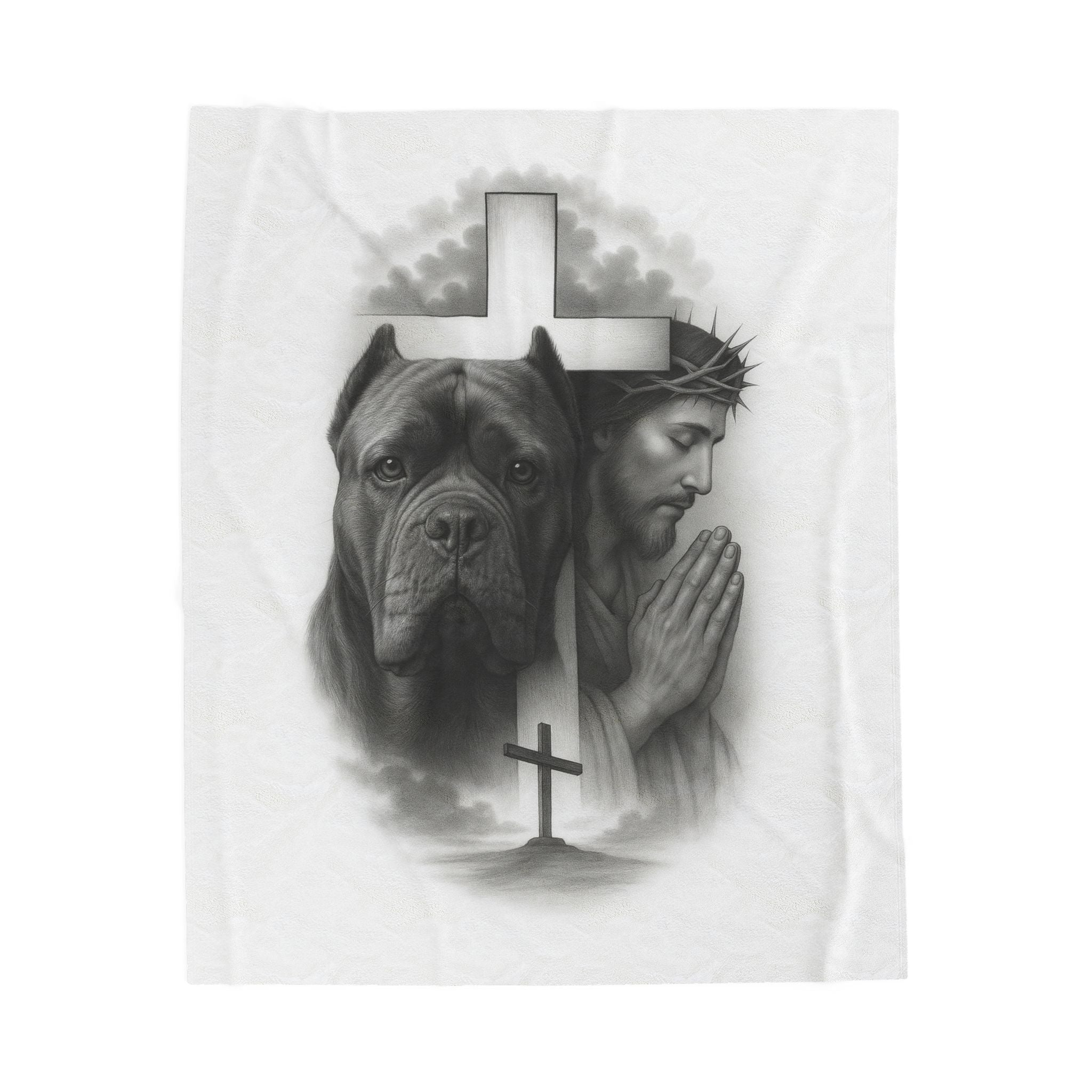 Christian Prayer Blanket with Cane Corso & Cross — Velveteen Plush