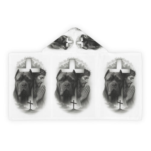 Youth Hooded Towel — Praying Jesus & Mastiff Cross Design